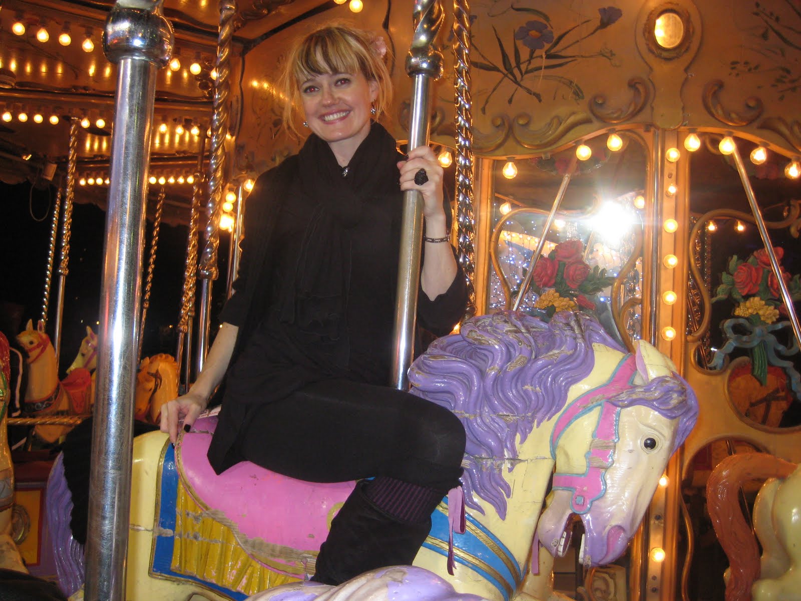 up until 5 or 6am again. *still* on dc time. slept until 2 and headed out to the world’s oldest cafe, le procope, and was less than impressed. i was excited about a true cafe, this was now more of a fancy restaurant serving ungodly dishes like braised ox cheek. yuck! we left and headed to a delightful sidewalk cafe nearby. that’s where we indulged in that gorgeous cheese plate above. next to rasa for 1.5 hours of yummy yin yoga taught mainly in french. absolute delight. then we rewarded ourselves with nutella-filled crepes. oh my, it was even too sweet for moi which is unheard of. i couldn’t finish it but was sure to get every bit of whipped creme i had smoothered on top. we walked along the seine for at least an hour en route to the eiffel tower. we’d hoped to take a ride up to sip bubbly in the champagne bar but didn’t have the patience to wait in lines and they were incredibly long. instead i jumped onto the colorful carousel with glee. love. me. some. carousels. there is something about the music, colors, sparkles, painted ceilings, lights, and twirling that feels decadent. i stayed on for a second spin. truly a highlight of this trip. we took the metro back to a nearby stop, walked many blocks home so i could grab a book and headed to yet another sidewalk cafe. it’s 10ish at night at that point and i savored the yummy salad shown above topped off, of course, with my second parisian banana split. note the look in beau’s eyes as he gets ready to dive into the whipped creme covered banana split. i wrote in my journal, sipped mint tea, he read on his iPhone, and then we chatted about what we wanted to do by this time next year. moi: develop etsy shop, grow TranquiliT luxe, 1.5 years MSW completed (2.5 to go), develop online tranquilista series (spin off of online creativity circle). finally, we walked home in the rain with full bellies and happy hearts. another divine day parisian style.