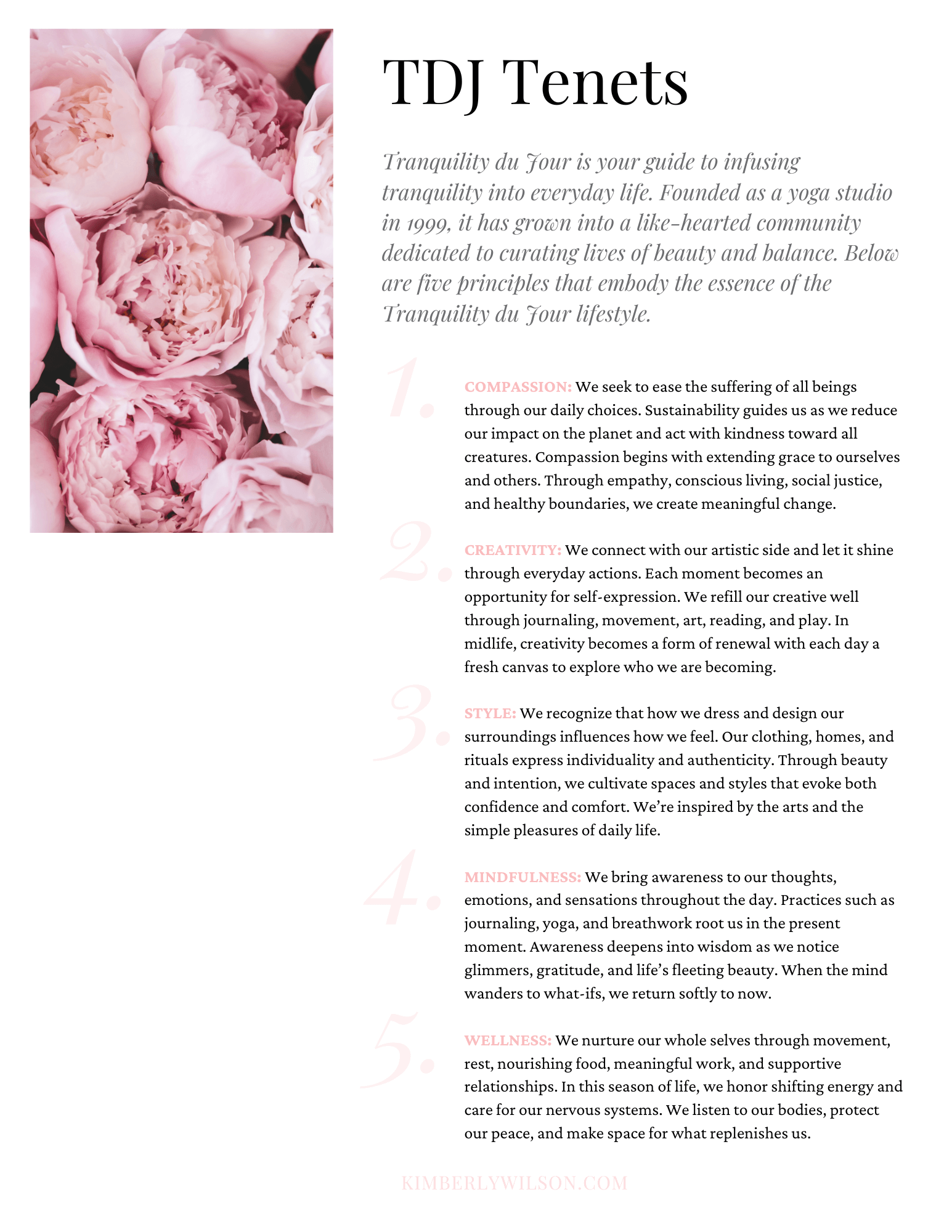 You’ll find the TDJ Tenets—the 5 principles of living a Tranquility du Jour lifestyle—sprinkled throughout everything I do here.