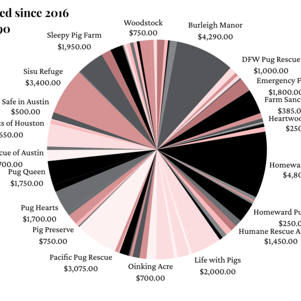 Below is a snapshot of the organizations that have benefited from your kindness over the years. From Homeward Bound to Pacific Pug Rescue to Life with Pigs and beyond, these donations ripple out to touch countless lives.