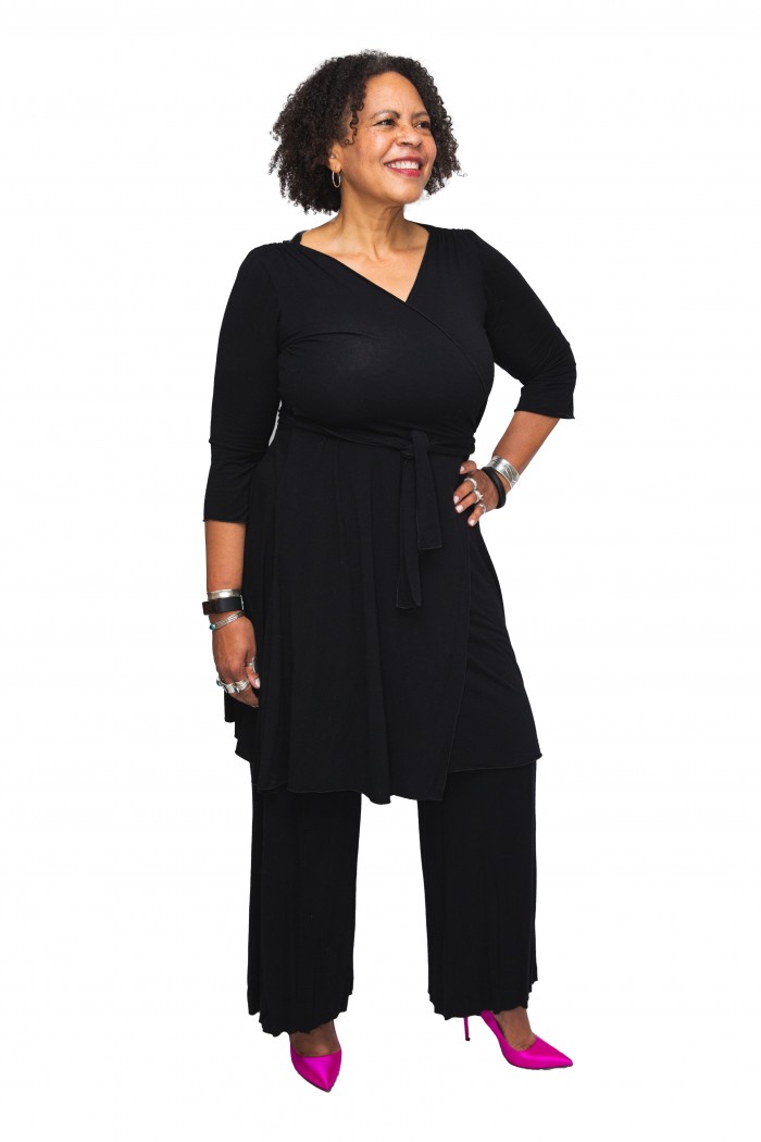 Our best-selling pant has an elegant, flowy drape. It’s a dramatic, yet subdued closet staple. Wear with the comfy waistband folded down over the hips or up to cover the belly.